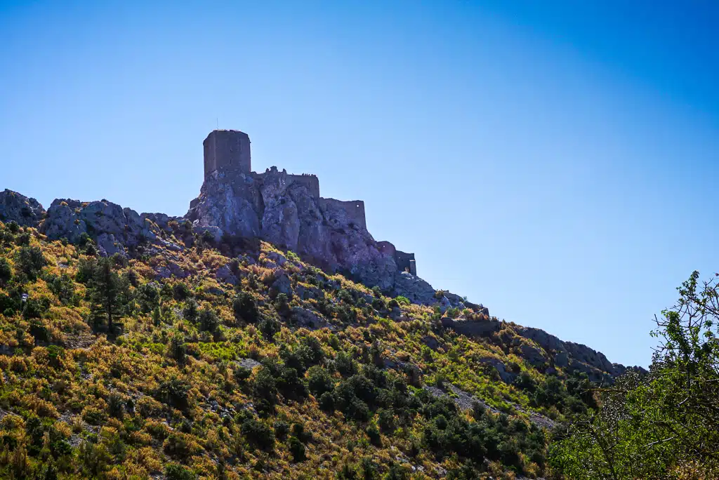 Après avoir arpenté le chemin qui mène au château, vous traverserez une, deux puis trois enceintes avant d’atteindre le donjon. C’est certainement notre partie préférée de la visite. Contrairement au château de Peyrepertuse, le site est bien mieux préservé et permet ainsi de se projeter dans ce qu’a pu être l’endroit lorsqu’il servait de refuge aux héritiques de la région.