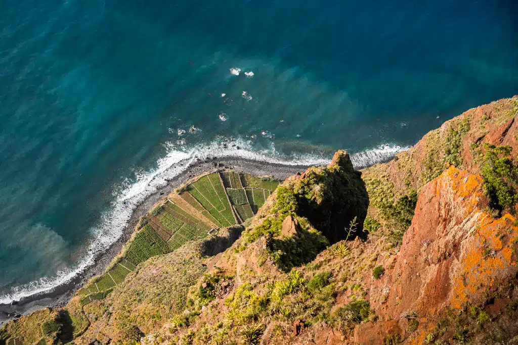 - ❤️ Marcher au-dessus du vide au Cap Girão. Le point de vue est superbe avec les falaises qui plongent à pic à plus de 500 mètres au-dessus de la mer ! Un belvédère avec une plateforme en verre ont été aménagés. Au pied des falaises, les plantations et les jardins forment de jolis motifs. Attention, il faut venir tôt (à partir de 9h30, il commençait à y avoir foule et de longues files d’attente pour accéder aux machines permettant d’acheter un billet d’entrée (l’accès est payant, 2 €).